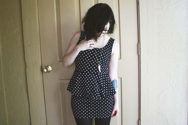 Dress: Mod Dolly, Belt and necklace: F21, shoes: Payless, glasses: Ray-Ban